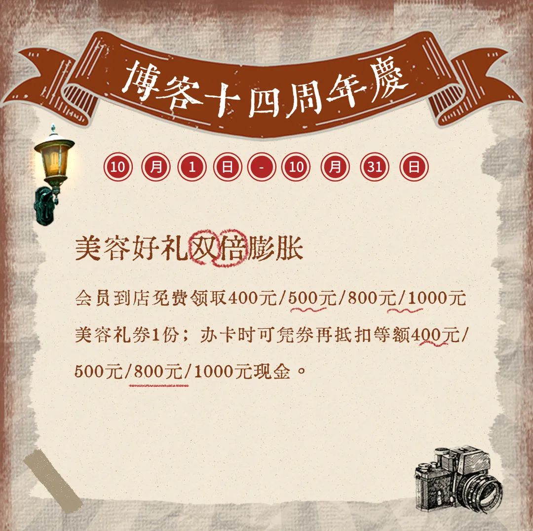 會員到店領取400元/500元/800元/1000元美容禮券1份;辦卡時可憑券再抵扣等額400元/500元/800元/1000元現金。